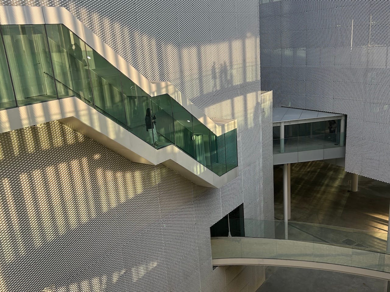 I was impressed with the new Taichung Art Museum, including the architecture by SANAA, but also the way that the programming grows along the pathways of the building. The galleries are beautiful, of course, but the life of the building happens in between them. There is a fantastic little reading library in the connecting foyer-bridge area between two of the galleries. And there are delightful little hidden doors that lead out the back ends of several of the galleries, opening into glass stairwells up or down into the rear entrances of other galleries.