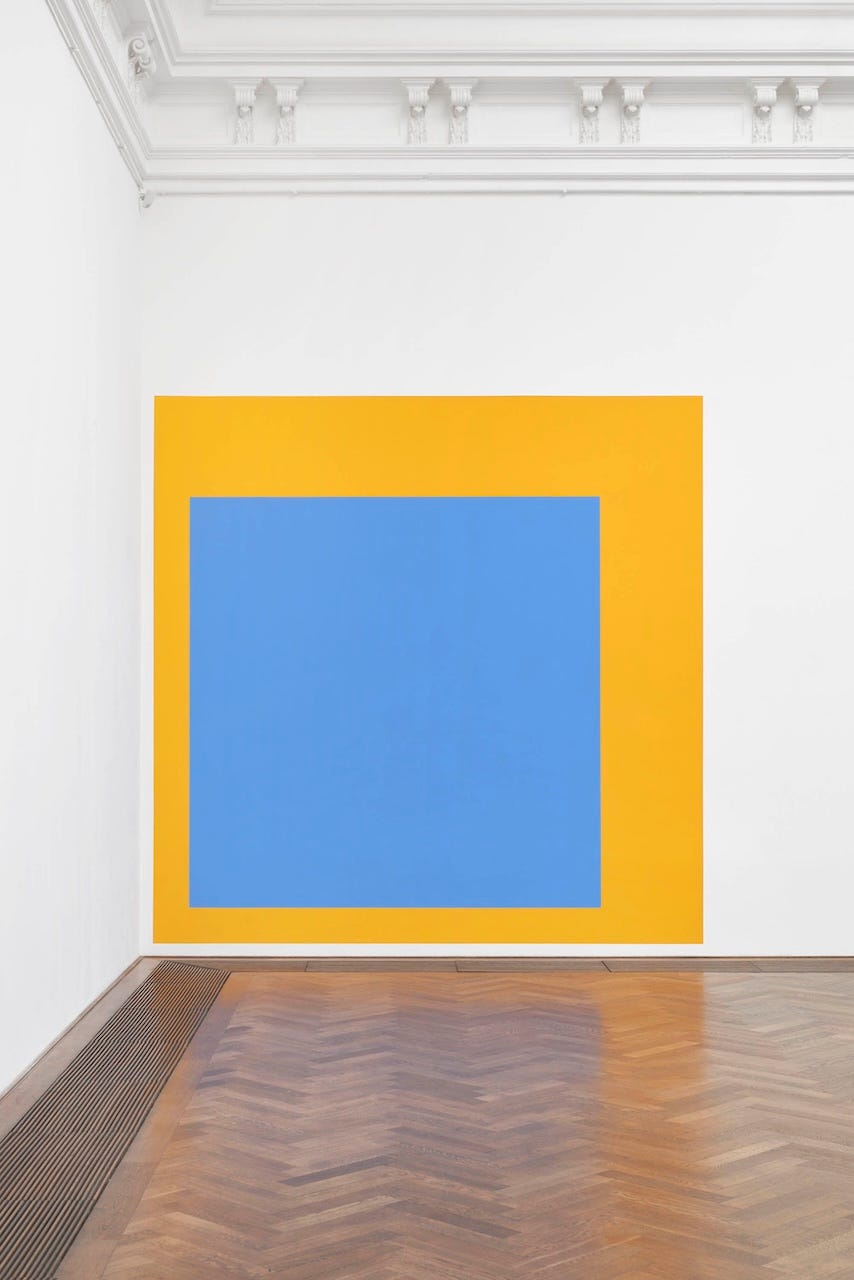 As we see in Ghislaine’s introductions to her two “Reproductions” exhibitions, motherhood is an important part of how she considers her labor—as an artist, as a mother, and as a member of society. Just one part, of course. In a wall painting titled Jobs that was also repeated on the exhibition poster for “Commitments,” her solo exhibition at Kunsthalle Basel last year, her many commitments are listed in full. Mother comes last. I suspect their order to be chronological, but as this is not specified in the score I remain unsure. Mothering, perhaps, is the last thing one ever does. “Commitments” also included a pair of Albers-esque geometric wall paintings. The score to Care reads: