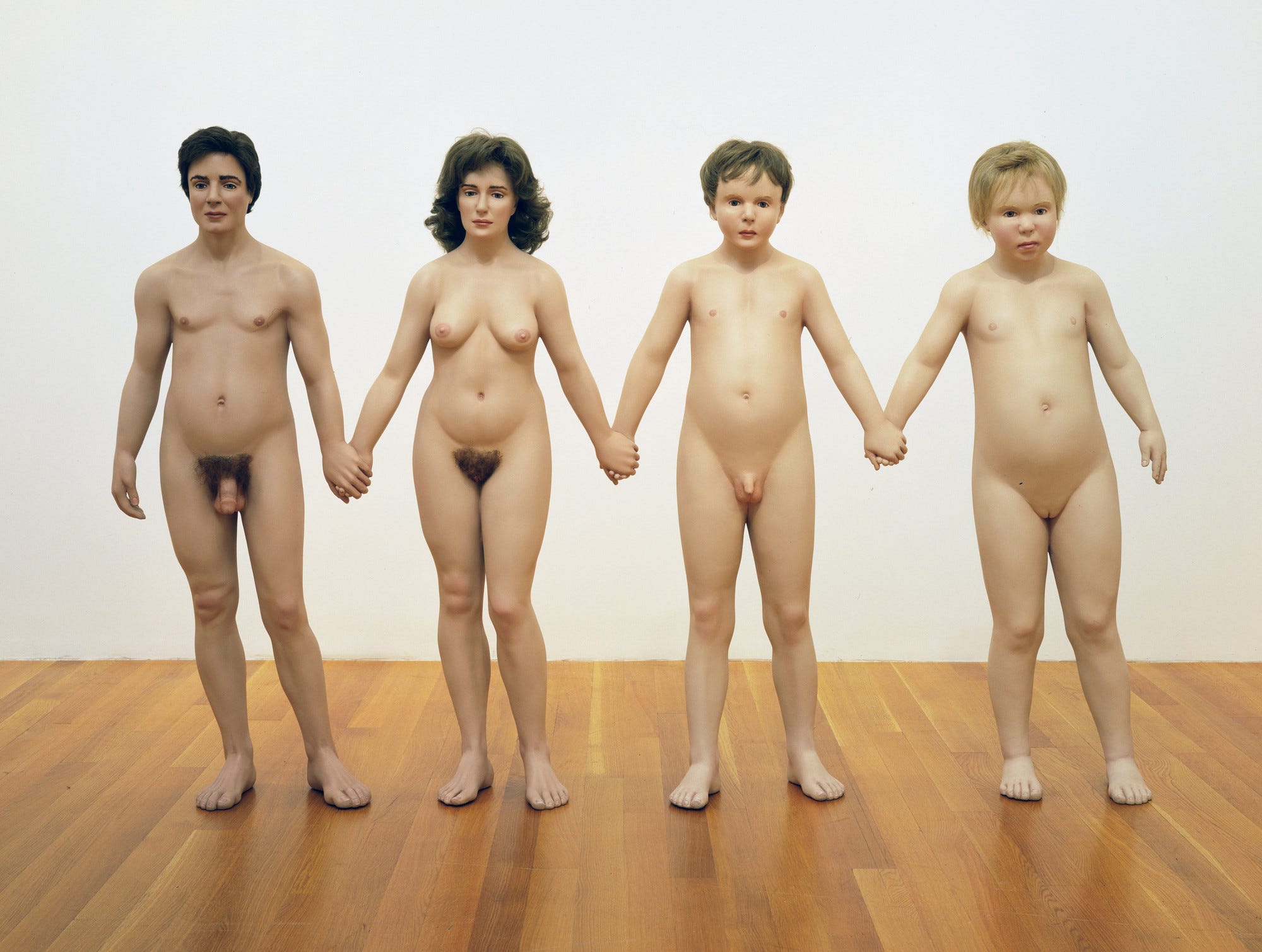 This painting is titled The Painter, and is based on a photograph of Marlene Dumas’s daughter coming in from finger painting in the garden. The painting is two meters tall and one meter wide. Hung even slightly off the ground, the figure dwarfs the viewer. There is something unsettling about the body of a baby in the proportions of an adult—think of Charles Ray’s Family Romance, coincidentally executed around the same time as The Painter.