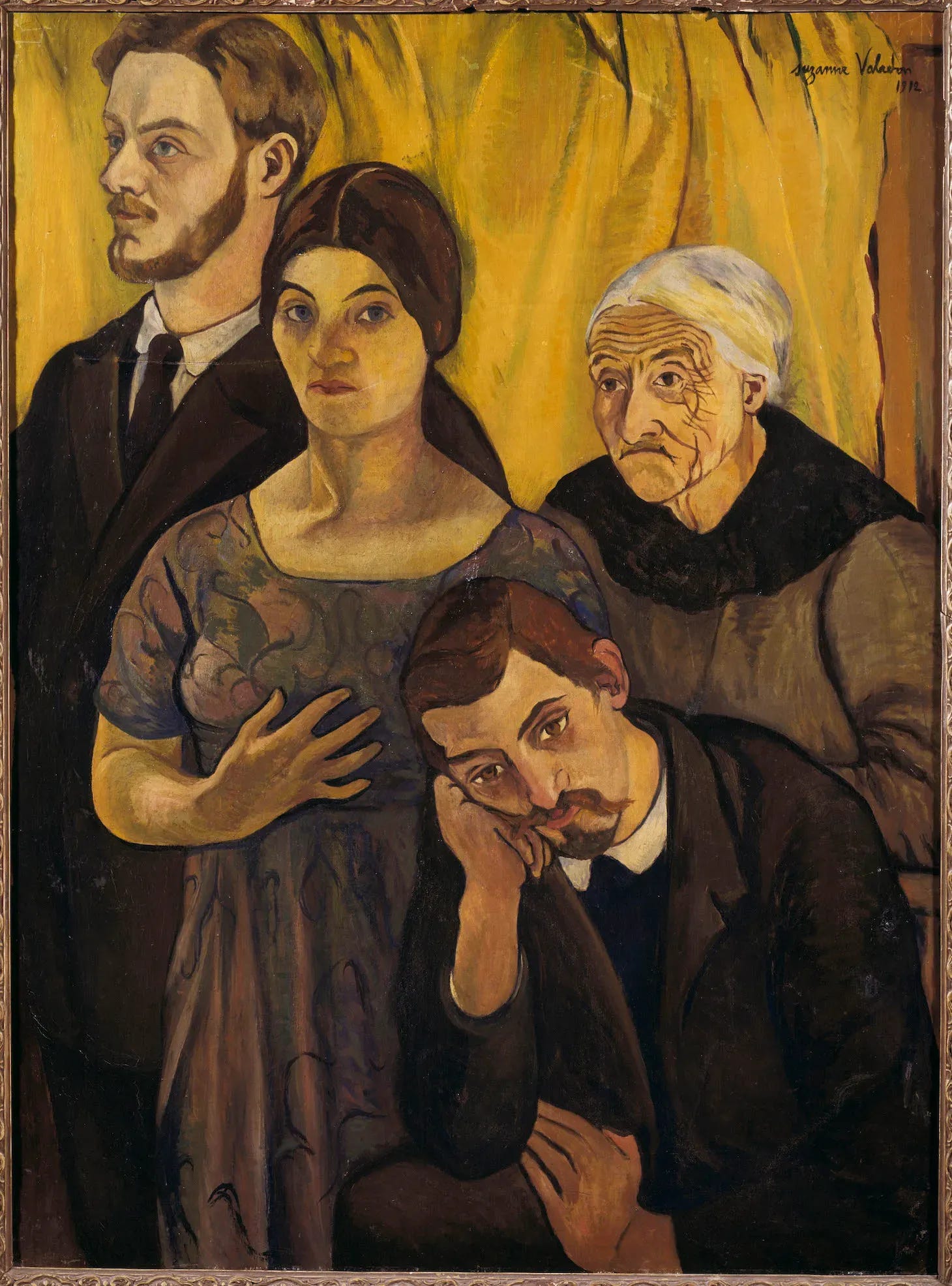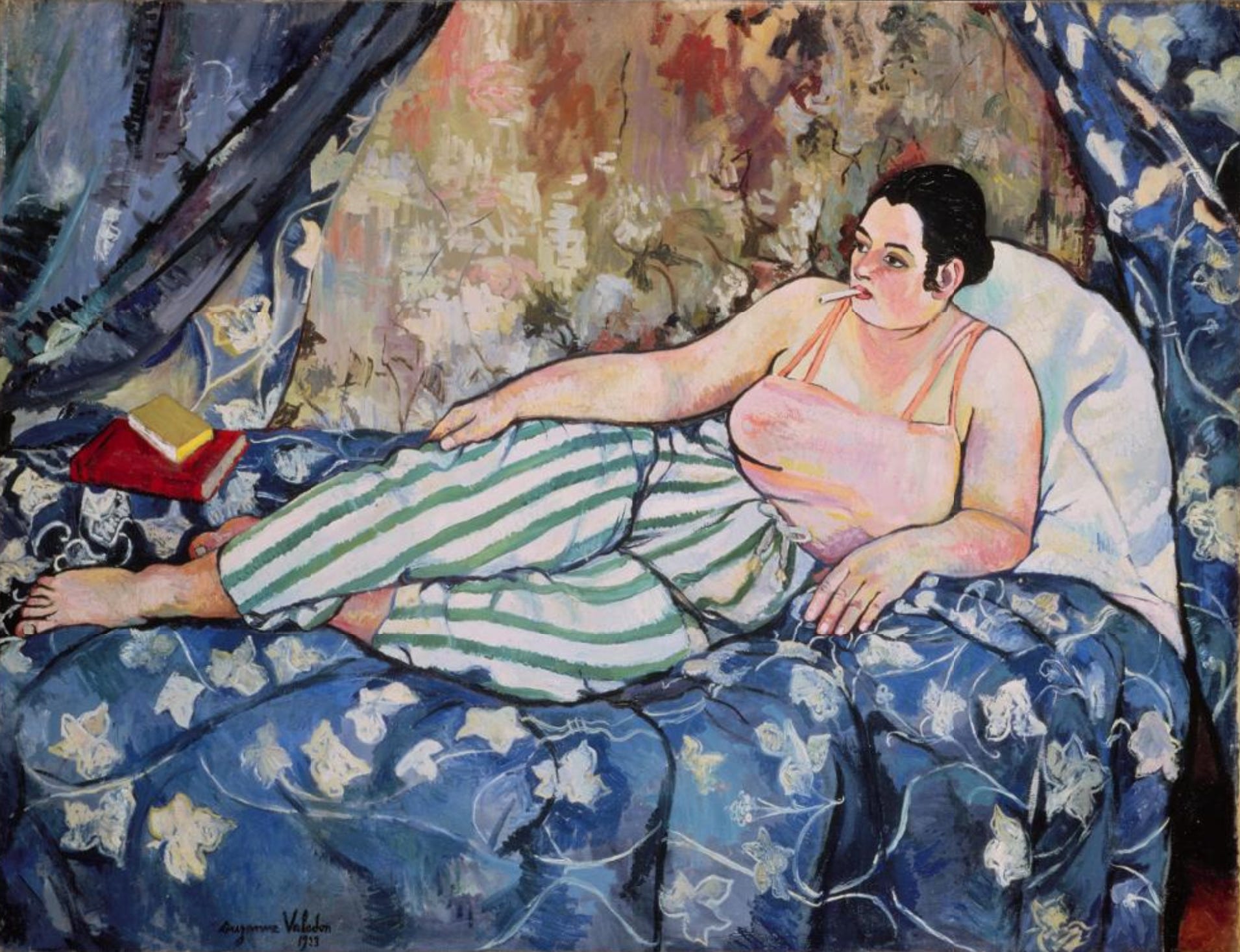 Although I am no expert, assuming that some readers will be as unfamiliar with her work as I was, I will share a brief biographical sketch: Suzanne was born Marie-Clémentine Valadon in 1865 to a single washerwoman in Montmartre, and came into contact with art when she began modeling (among other odd jobs) at the age of 15 for Henri de Toulouse-Lautrec, who gave her her nickname—after the biblical Susanna. She also drew, and received encouragement from Toulouse-Lautrec and Degas. Becoming a single mother herself at the age of 18, she continued living with her mother, and developed a practice of portraiture based on her mother and son, as well as lovers and friends from a wider circle as she rose in social status through the reception of her work.