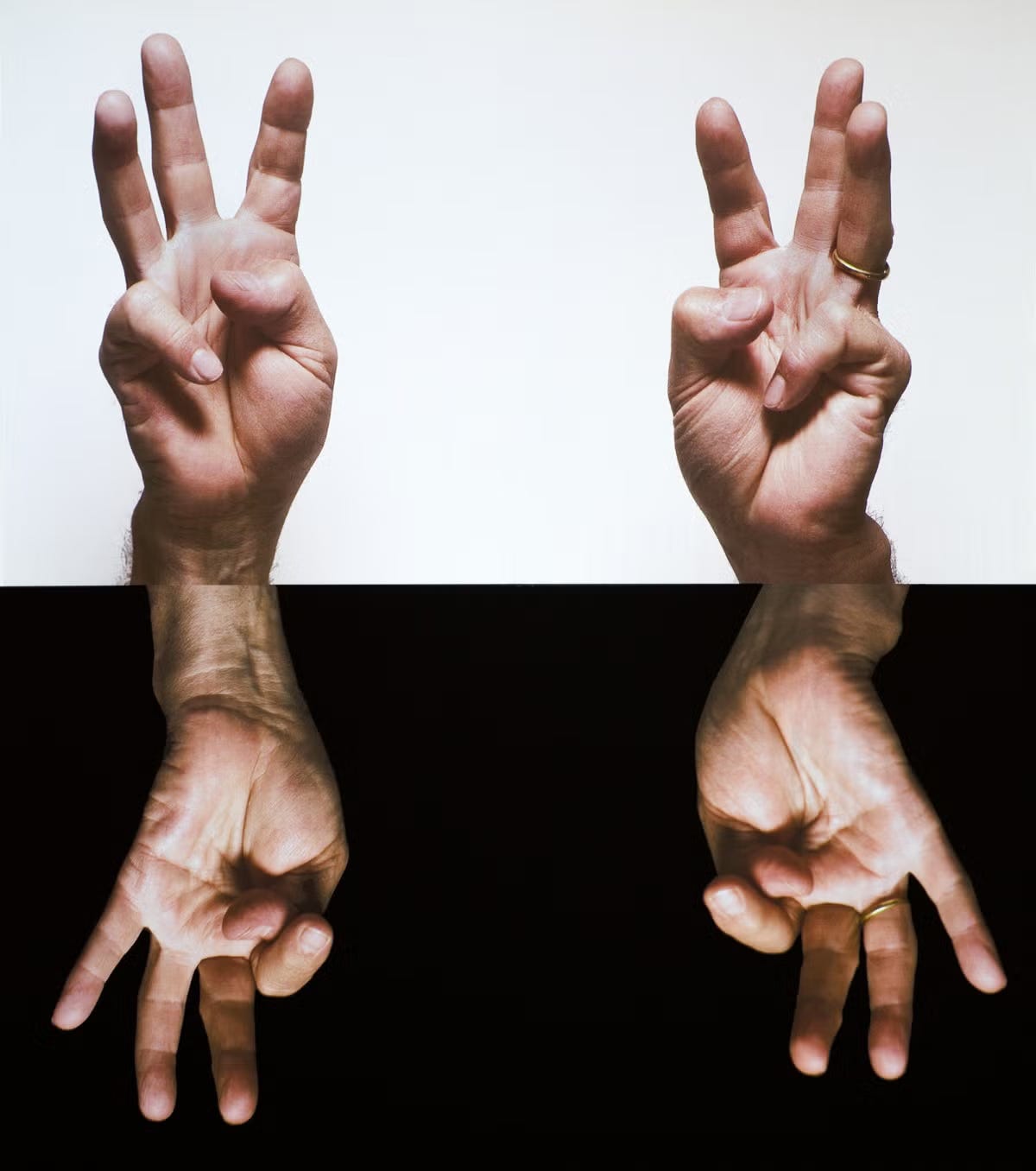 The title of the exhibition seems obvious and declarative: art for children. But it is an allusion to a Bruce Nauman installation that one encounters in the exhibition, a work in which we hear the artist repeat the phrase “for children” on a loop, which was itself titled after the Bela Bartok piano pieces For Children, originally intended to teach piano to young people. Bruce’s work was originally a part of “For Children/ For Beginners,” the latter half of which was a large-scale projection of “all the combinations of the thumb and fingers,” mirroring the poses of schoolyard hand games with the fingering positions of the piano.