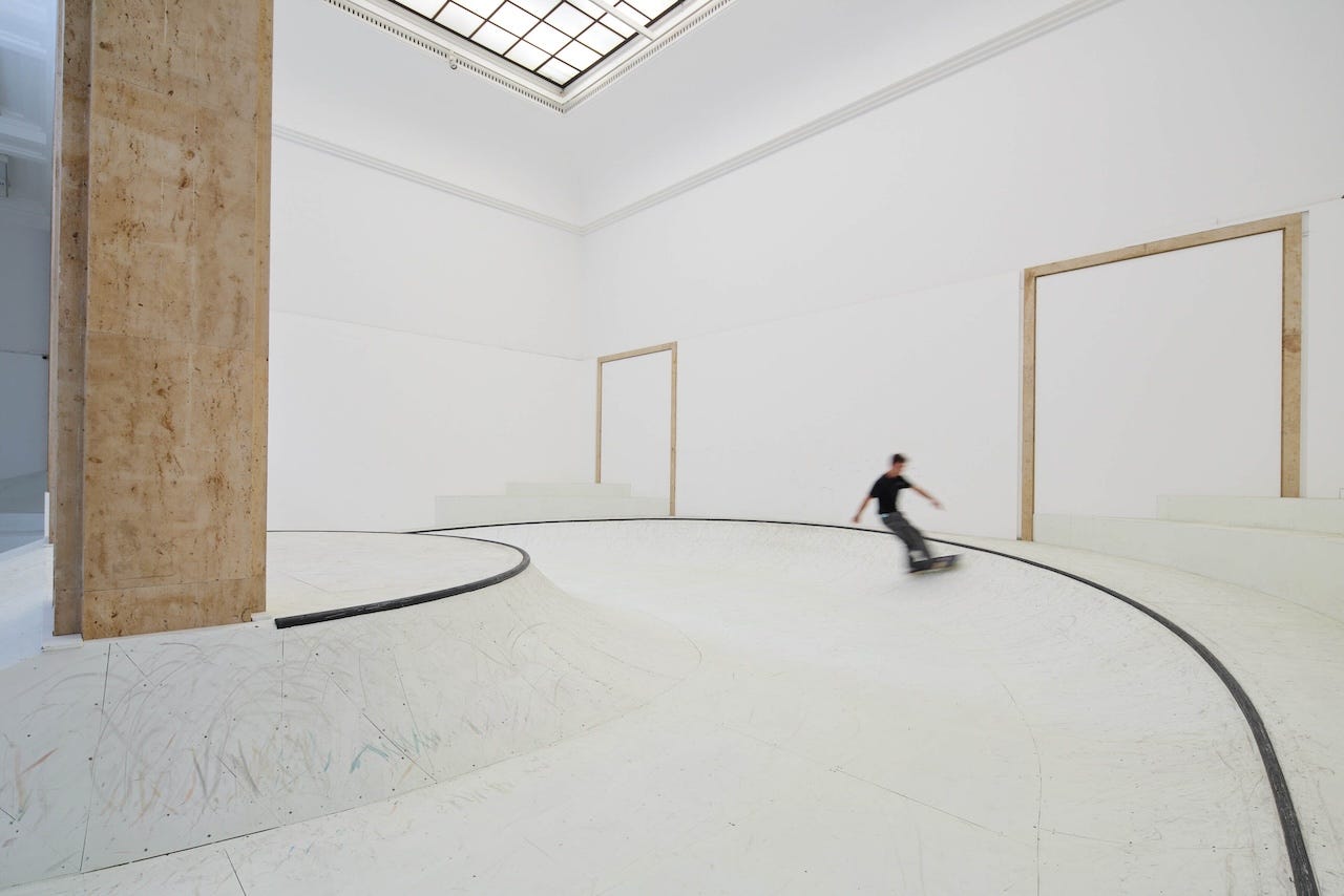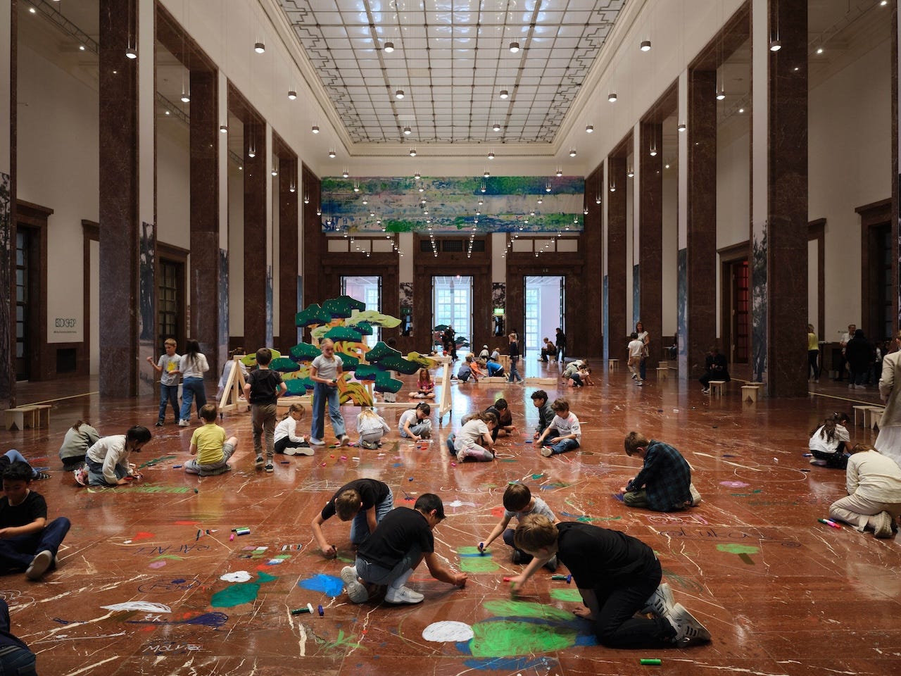 There are two things I really like about this show. One is it speaks to a broader age range than most. When we imagine “art for children,” too often we immediately jump to older toddlers and lower primary years kids—the age set who can spend the afternoon doodling on the walls and floors, as they are indeed invited to do in Ei Arakawa-Nash’s Mega Please Draw Freely (2025), which occupies the central hall at the entrance to the exhibition. The Haus der Kunst also invites the participation of older youth and younger adults. They are given opportunities to participate in the work itself, like with Koo Jeong A’s HAUS DER MAGNET (2025), an indoor-outdoor skate park, and crucially, in the making of the exhibition, via a youth council that came together in advance of this show. As the proud father of a tween student council representative, I can confirm that there is nothing more important than making kids this age feel included in the machineries and bureaucracies that shape their lives.