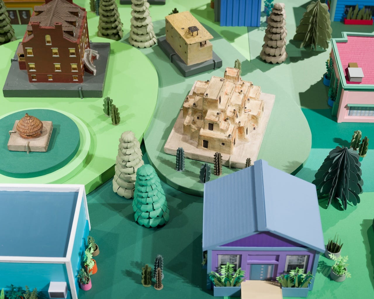 It’s another “Exhibition for Kids”! This one is genuinely for kids, not “curated as if,” which makes it a bit surprising that it’s a fall exhibition rather than a summer holiday show, though it’s on through spring so I guess they’ll get the winter holiday visitation. It’s largely a different set of artists than the one we’ve become accustomed to, with an American pop slant in Oldenburg, Lichtenstein, and Jeffrey Gibson. Halfway between an exhibition of contemporary art accessible to young audiences and an educational interpretive display about contemporary art, the exhibition design does a lot of the heavy lifting. I like the idea of a wall designed with apses and niches for encounters with works of art.
