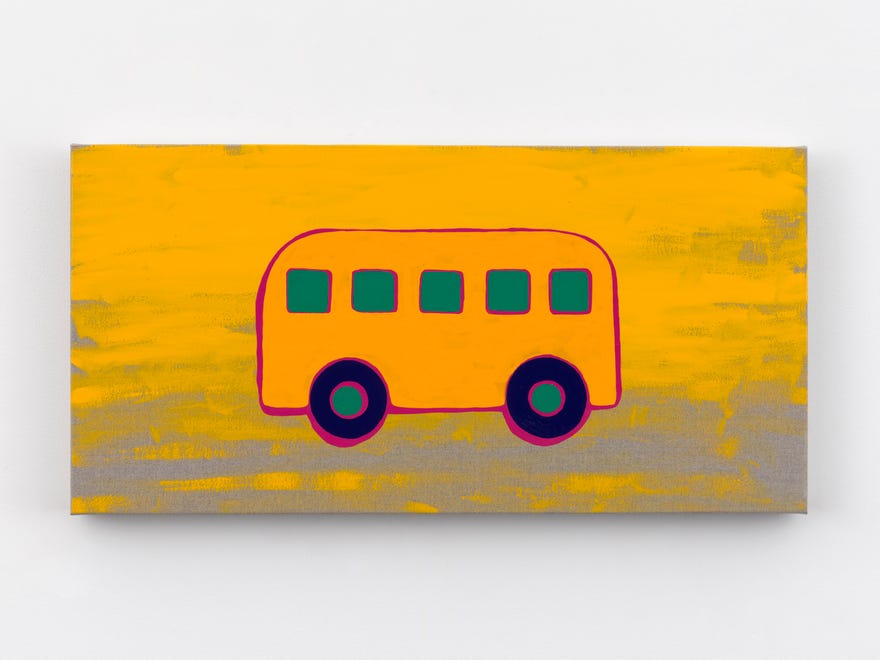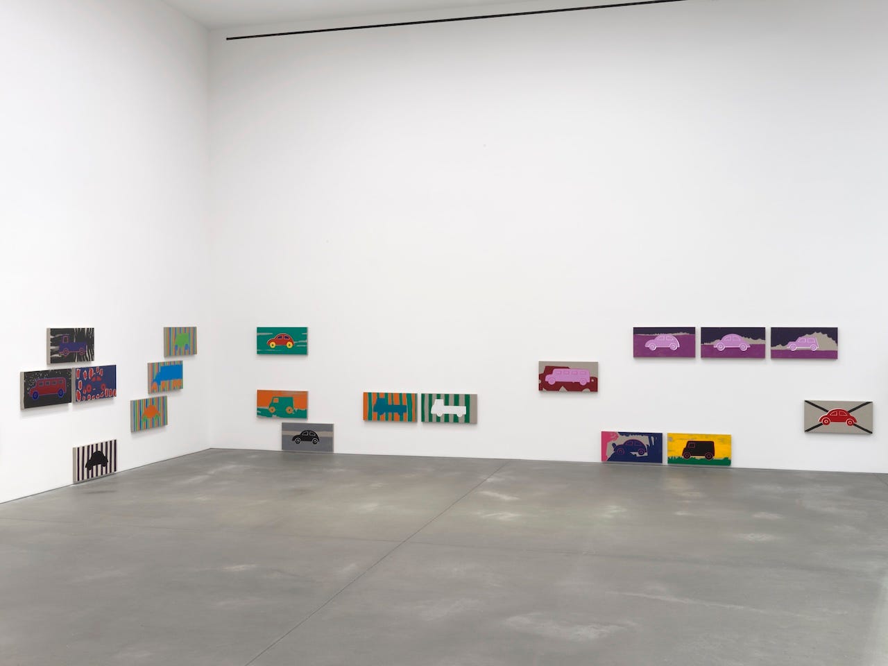 Zak Kitnick, whose work has so much been about seriality and repetition as the underlying structure of painting, has found a new conceit as a new father, evident in his exhibition “Paintings for Children.” He’s made more than 100 paintings of cars, trucks, and things that go, recognizable and consistent forms drawn from bedsheets that he remembers from his childhood. They’re hung in the gallery in several different bands, all at heights where they’re easier to see for children than for taller adults.