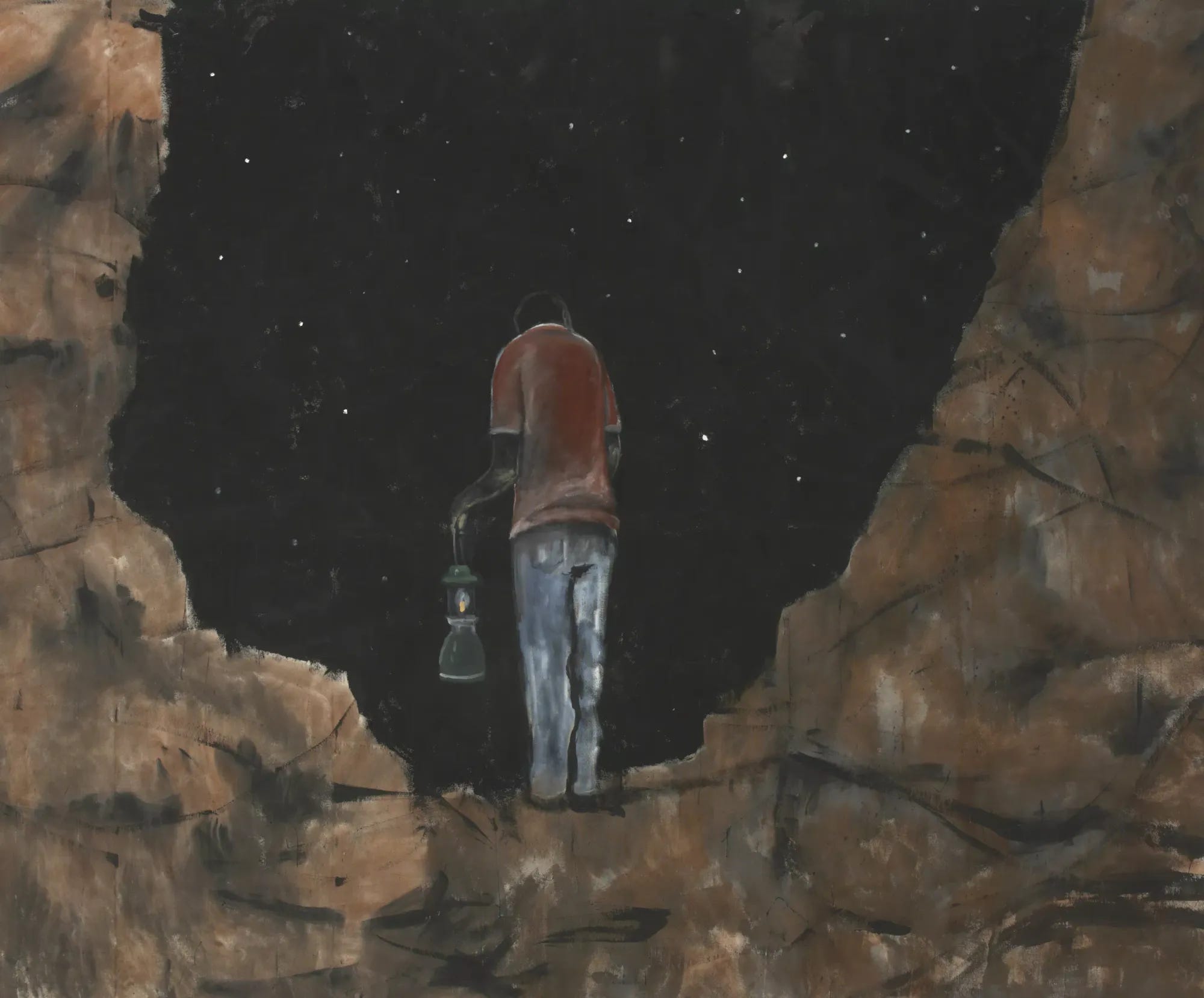 The pièce de résistance in London is Painting for My Dad, an oversized piece more than two meters wide, a dark and looming picture hung on a black wall. Finished shortly after the artist’s father died and a couple years before his own untimely death from cancer, Painting stares into the void with terror and longing and tension and cold acceptance. In his short career, in his short life of 32 years, Noah packed in far more than the exuberance of some fantastic paintings—the rich scaffolding of a social structure for how life might be lived.